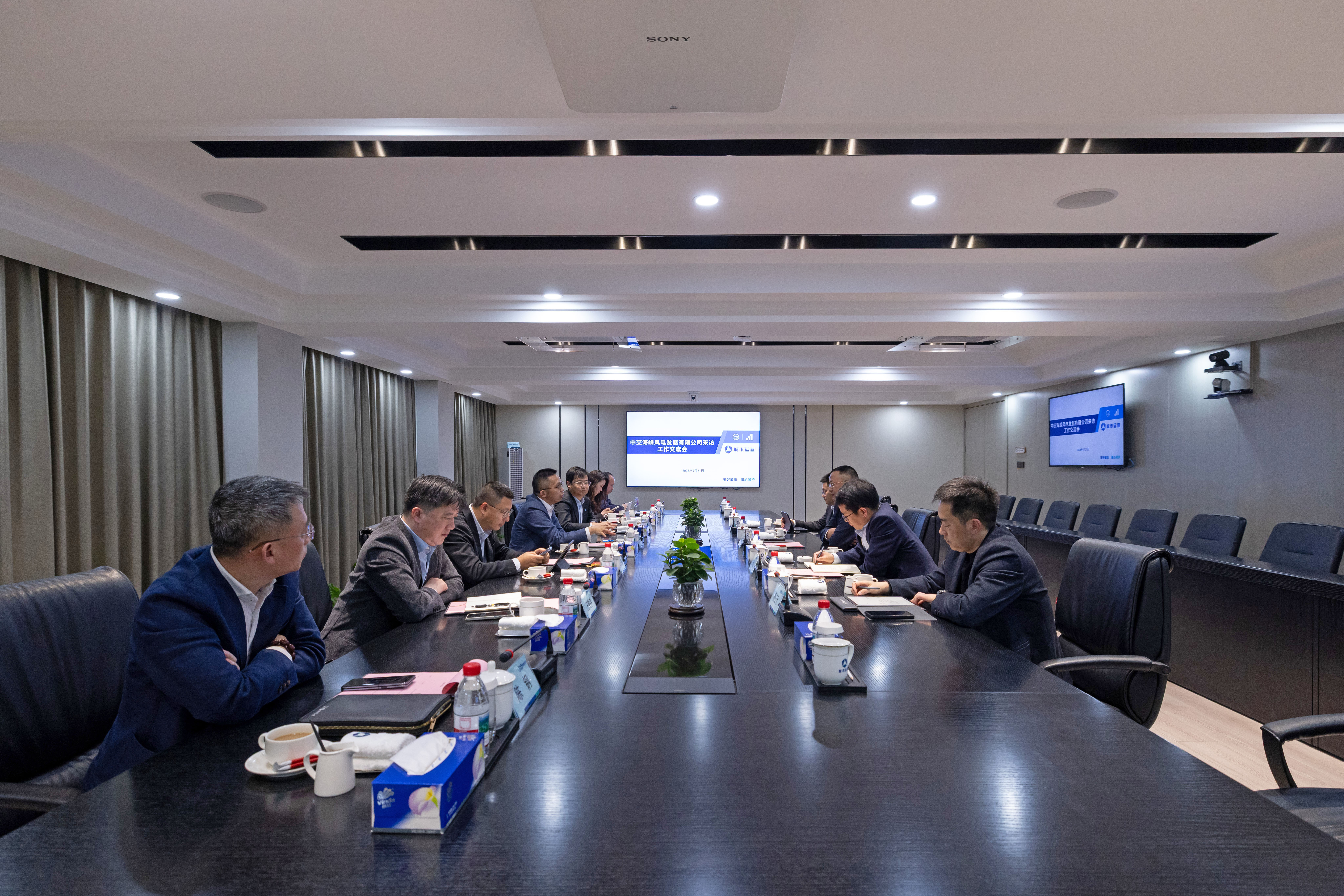 4月21日下午,中交海峰风电党委书记、董事长孙伟明拜访上海隧道股份城市运营公司党委书记、董事长金恩,双方就进一步深化合作开展座谈交流。